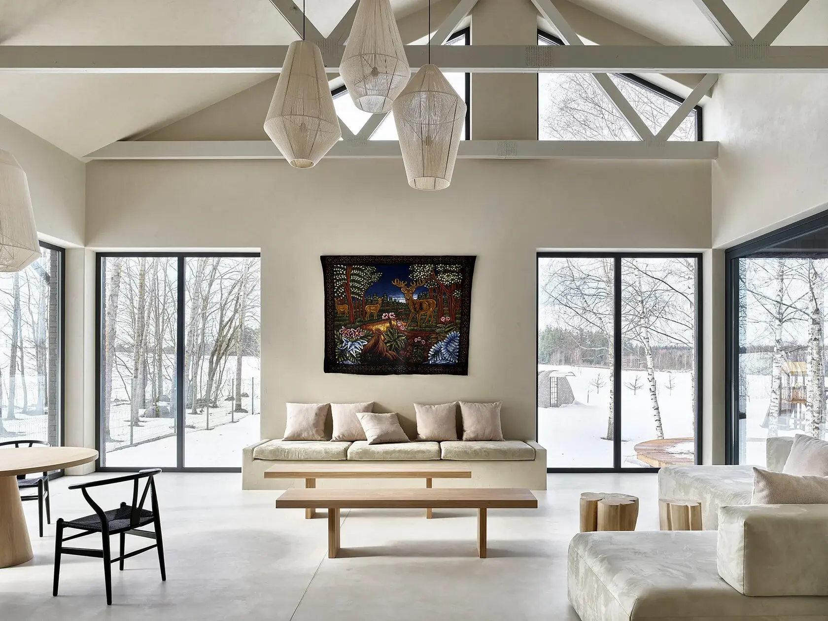 Наши полы имеют матовое покрытие, что придает им стильный и современный вид. Мы также начали использовать новый лак со степенью блеска всего 3%, который добавляет легкое сияние и подчеркивает текстуру микроцемента, не нарушая при этом элегантности матового финиша.